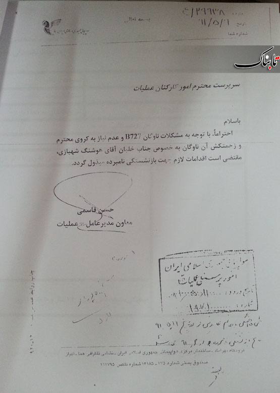 دستور بازنشستگی کاپیتان شهبازی که به اعتقاد وی از فحوای کلام آن میتوان به همه ابعاد ماجرا پی برد. روایت مسئولان از ماجراسخنان